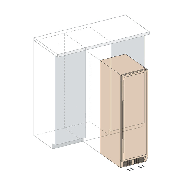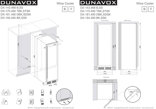 Компрессорный винный шкаф DX-170.490TBK может быть встроен в мебельную встроен в нишу без соблюдения зазоров или использоваться как отдельностоящий. Охлаждение системы компрессора организовано через вентиляционные решетки внизу шкафа.