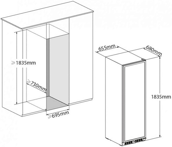 Одна камера в технике такого типа встречается чаще всего, потому что в ней просто расположить все функциональные детали, и в итоге прибор действительно похож на обычный шкаф. Размораживается автоматически, поэтому не нужно вручную удалять иней со стенок и поддерживать тем самым оптимальные условия. Общий диапазон температур, которые можно установить: 5-22 градусов.