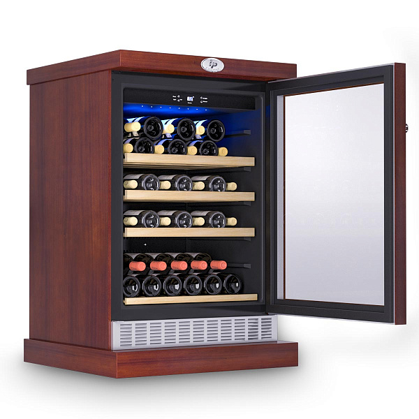 Корпус винного холодильника CEXP 45-6 СU выполнен из металла в деревянном коробе Risto Line - оптимальный вариант для интерьеров, выполненных в классическом стиле.