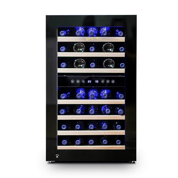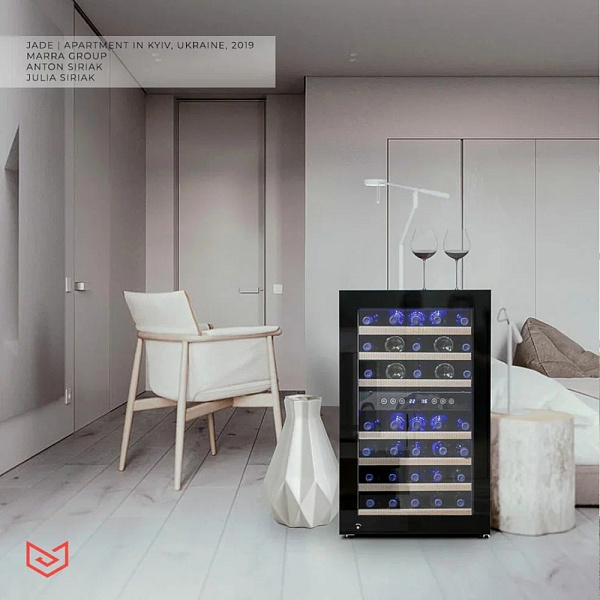 Изысканный дизайн модели делает её абсолютным выбором большинства: корпус MV45-KBF2 выполнен из стали окрашенной в чёрный цвет, стекло с шелкографией полностью покрывает дверь. Современная технология освещения позволит Вам в любое время эффектно продемонстрировать Вашу винную коллекцию гостям. Каждая деталь модели гармонично дополняет друг друга, делая винный шкаф универсальным под любые стили интерьера.