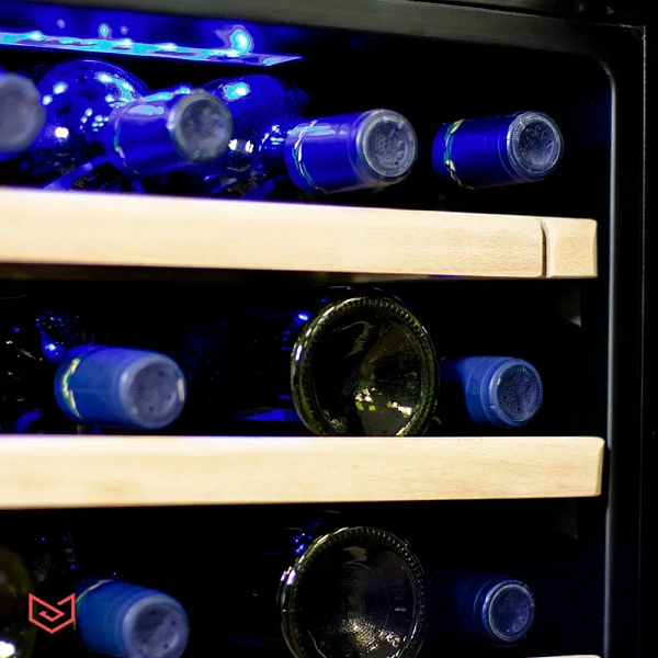 Благодаря продуманному внутреннему исполнению и съемным полкам Вы сможете размещать бутылки любого объема. Внутреннее пространство рассчитано на хранение до 45 бутылок типа Бордо (0,75 л). При желании можно извлечь несколько полок и разместить большее количество бутылок. Габариты модели позволяют разместить ее максимально функционально в любой зоне: кухне, столов