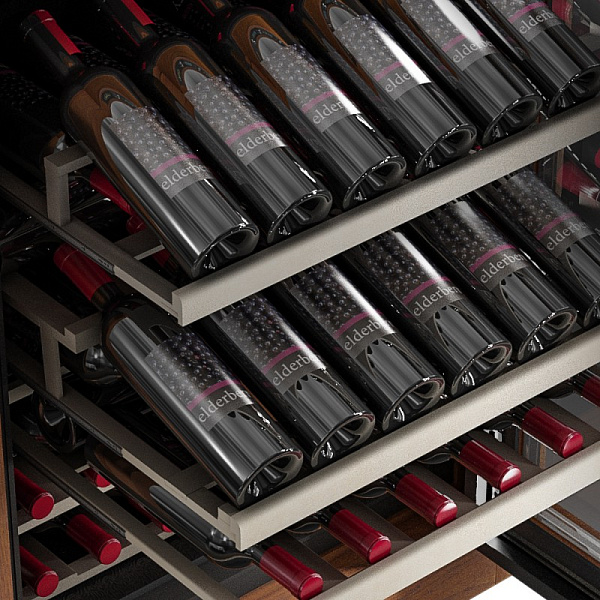 Для хранения винной коллекции предназначены специальные полки из натурального бука в количестве 10 штук: нижняя (1), универсальная (7), демонстрационная (1), полка с водным резервуаром (1). Для поддержания оптимального уровня циркуляции мы настоятельно рекомендуем не размещать бутылки вплотную с компрессором и стенками винного шкафа. Для того, чтобы регулировка уровня влажности была наиболее доступной, производитель оснастил модель специальным резервуаром с водой, обеспечивающим отсутствие посторонних запахов внутри винного шкафа, а также гарантирующим поддержание заданного влажностного режима. Специальный балансировочный механизм позволит Вам установить шкаф максимально быстро и легко.