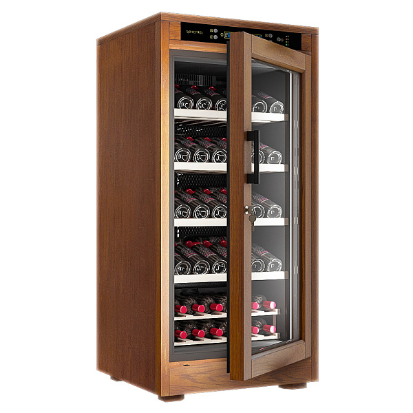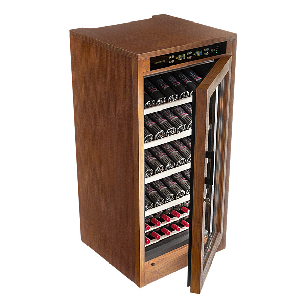 Благодаря изысканному внешнему виду, данный винный шкаф становится оптимальным вариантом для установки в Вашем интерьере: деревянный короб, выполненный из Американского дуба в цвете "Орех" отлично дополнит любое дизайнерское решение. Одним из отличий модели MV66-WN1-M от других винных шкафов данной линейки является расширенная вместимость: внутреннее пространство рассчитано на хранение до 66 бутылок типа Бордо (объем - 0, 75л). При заданных габаритах и достаточно обширном объеме внутреннего пространства, данную модель вполне можно отнести к группе компактных винных шкафов, оптимально подходящих для установки в любой функциональной зоне.