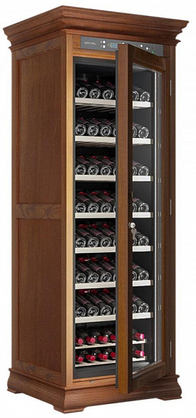 Одна камера в технике такого типа встречается чаще всего, потому что в ней просто расположить все функциональные детали, и в итоге прибор действительно похож на обычный шкаф. Охлажденный воздух поступает внутрь благодаря компрессору. Размораживается автоматически, поэтому не нужно вручную удалять иней со стенок и поддерживать тем самым оптимальные условия. Общий диапазон температур, которые можно установить: 5-22 градусов. Средняя влажность воздуха (в процентах), которая поддерживается, чтобы пробки в бутылках не пересыхали: 56-78.