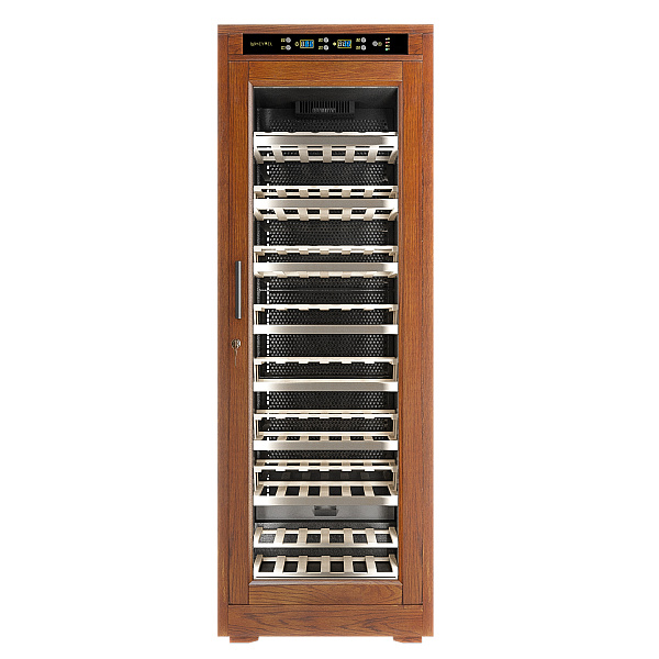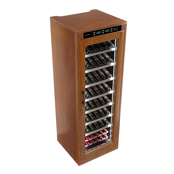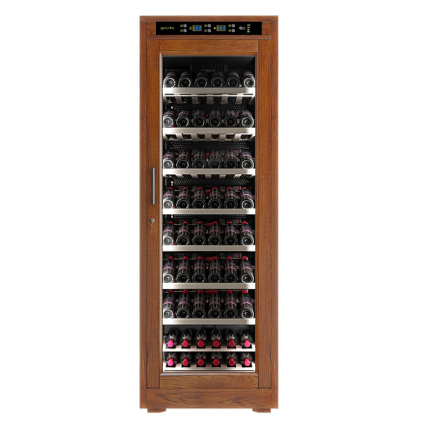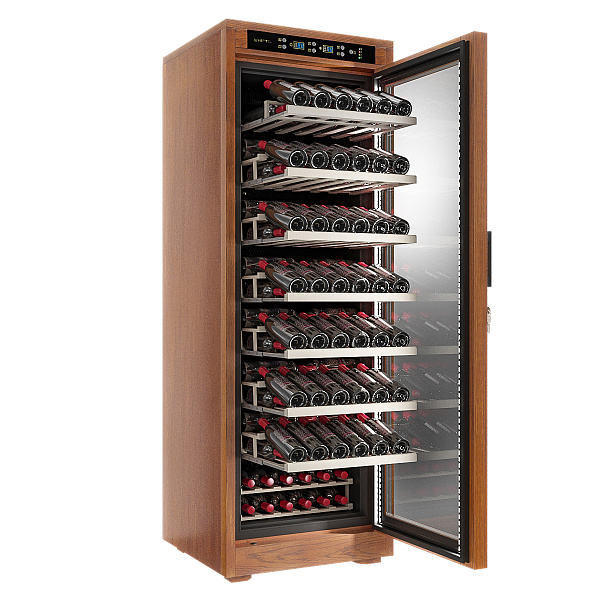 Изысканный дизайн модели делает ее абсолютным выбором большинства: MV108-WN1-M оснащен деревянным коробом из Американского дуба в ореховом цвете, благодаря чему винный шкаф становится оптимальным вариантом, подходящим для установки в любом дизайнерском интерьере. Отличительная особенность MV108-WN1-M заключается в том, что данная модель является самой вместительной среди всех представителей шкафов данной линейки: внутреннее пространство рассчитано на хранение до 108 бутылок типа Бордо (0,75 л). Габариты модели позволяют разместить ее максимально функциональной в любой зоне: кухне, столовой, гостиной.