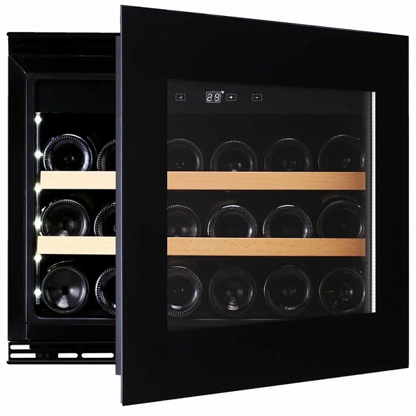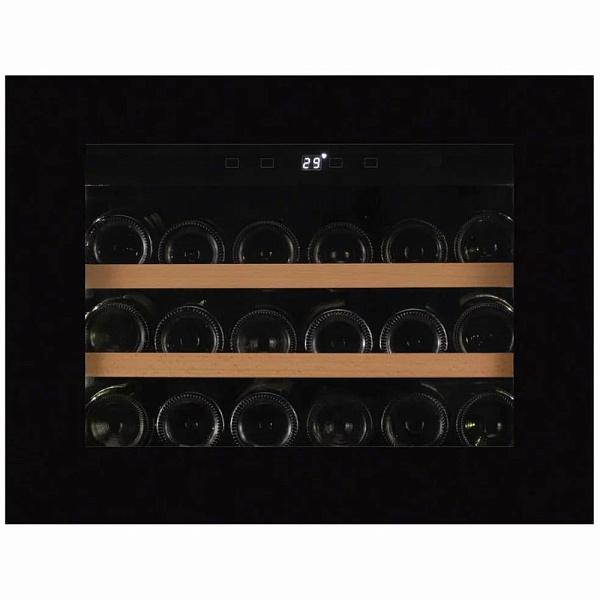 Дверца оснащена технологией Touch Open и открывается с помощью прикосновения. Тройной стеклопакет в рамке из нержавеющей стали предотвращает попадание солнца на вина. В монотемпературной камере можно выставить температуру от +5 до +20 градусов. Для повышения влажности в камере существует резервуар для воды. Компрессорное охлаждение минимизирует вибрацию и уровень шума.