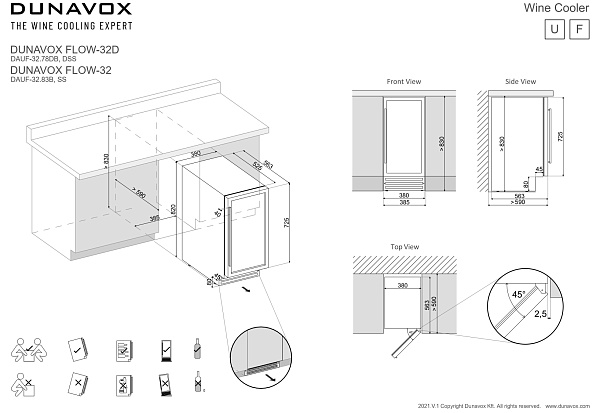 Инженеры компании Dunavox разработали новую модель встраиваемого винного шкафа DAUF-32.78DB. Установить его можно под столешницу Вашего мебельного гарнитура. Ножки регулируются под нужную высоту. Модель идеально вписывается в любой подходящий для Вас интерьер гостиной кухни, бара или кабинета.
