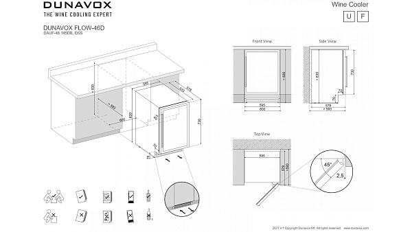 Модель DAUF-46.145DB как встраиваемая, так и отдельностоящяя. Установить ее можно под столешницу Вашего мебельного гарнитура. Ножки регулируются под нужную высоту. Модель идеально вписывается в любой подходящий для Вас интерьер гостиной кухни, бара или кабинета.