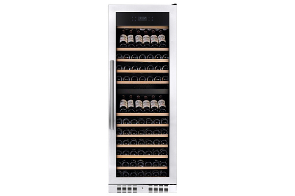 Винный шкаф c двумя температурными зонами (5-20 ° C, 5-20 ° C) с индивидуальной регулировкой температуры, благодаря чему Вы можете хранить в нем одновременно красное и белое вино. В винном шкафу помещается до 153 винных бутылок. При необходимости Вы можете убрать несколько полок и тогда Вы сможете поместить в холодильник для вина большее количество бутылок.