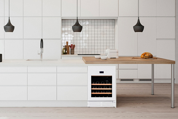 Винный шкаф c двумя температурными зонами (5-20 ° C, 5-20 ° C) с индивидуальной регулировкой температуры, благодаря чему Вы можете хранить в нем одновременно красное и белое вино. В винном шкафу помещается 46 винных бутылок.