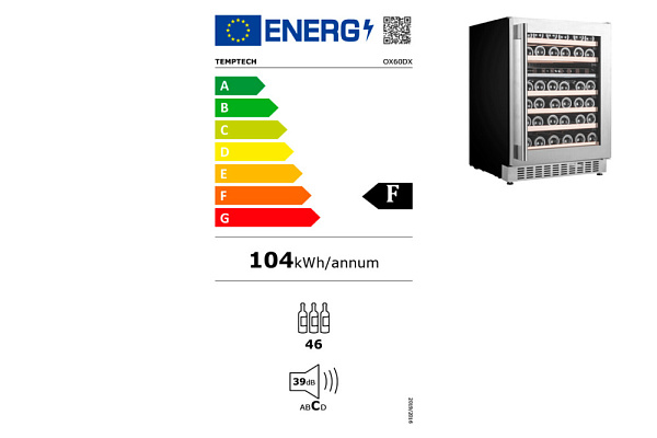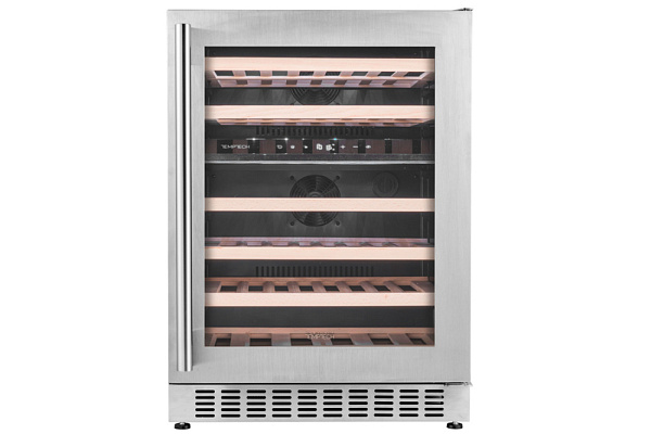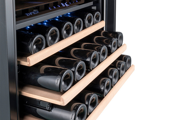 Винный шкаф Temptech OX60DX с двумя температурными зонами (5-20 ° C, 5-20 ° C) и вместимостью 46 бутылок может быть установлен под столешницу или установлен отдельно.