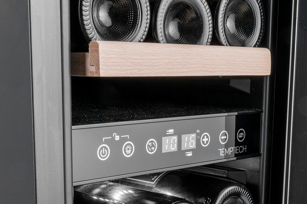 Винный шкаф Temptech OX30DRW с двумя температурными зонами (5-12 ° C, 12-20 ° C) и вместимостью 17 бутылок может быть установлен под столешницу или установлен отдельно.