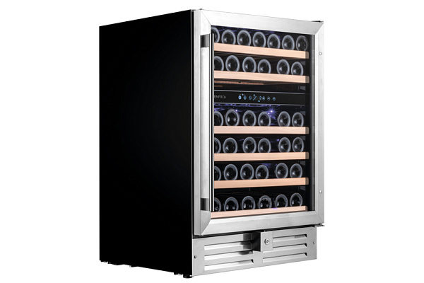 Винный шкаф серии Premium с фасадом из нержавеющей стали вместимостью 46 бутылок и двумя температурными зонами (5-12 ° C, 12-20 ° C).