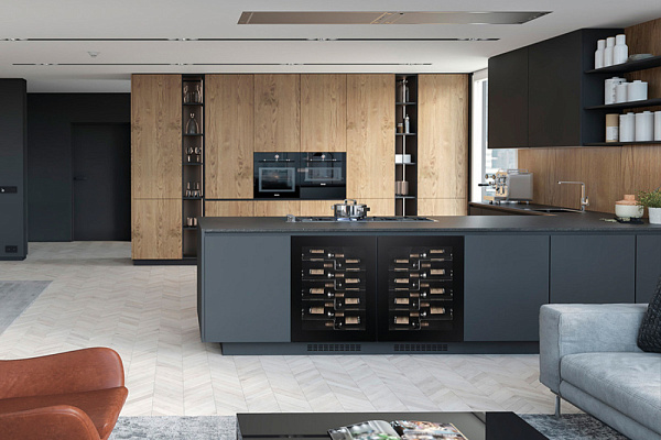 Винный шкаф оборудован вентиляторами, которые обеспечивают циркуляцию воздуха. Конденсат в винном шкафу используется повторно и, таким образом, поддерживает оптимальную влажность, а фильтр с активированным углем обеспечивает свежий и чистый воздух в холодильнике для вина.
