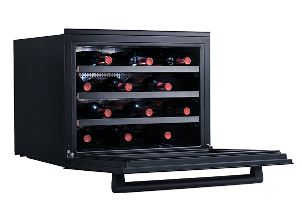 Ваша винная коллекция надежно хранится за дверцей с УФ-фильтром, которая защищает ее от вредных ультрафиолетовых лучей и тепла, которые могут попасть внутрь прибора.