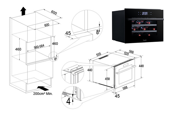 Данная модель винного шкафа оборудована вентиляторами, которые обеспечивают в нем циркуляцию воздуха, поддерживая постоянную и стабильную температуру. Конденсат используется повторно и поддерживает в приб