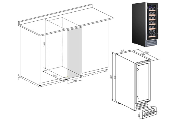 Об охлаждении винного шкафа заботится тихийКомпрессор с низким уровнем шума.Компрессор