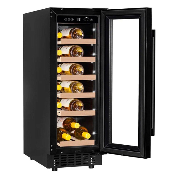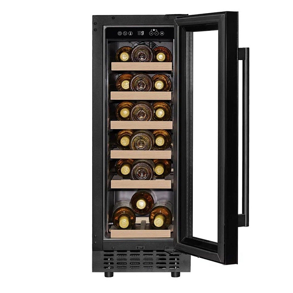 Одна камера в технике такого типа встречается чаще всего, потому что в ней просто расположить все функциональные детали, и в итоге прибор действительно похож на обычный шкаф. Охлажденный воздух поступает внутрь благодаря компрессору. Размораживается автоматически, поэтому не нужно вручную удалять иней со стенок и поддерживать тем самым оптимальные условия. Общий диапазон температур, которые можно установить: 5-20 градусов. Средняя влажность воздуха (в процентах), которая поддерживается, чтобы пробки в бутылках не пересыхали: 60-80.