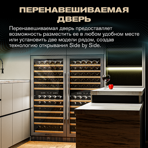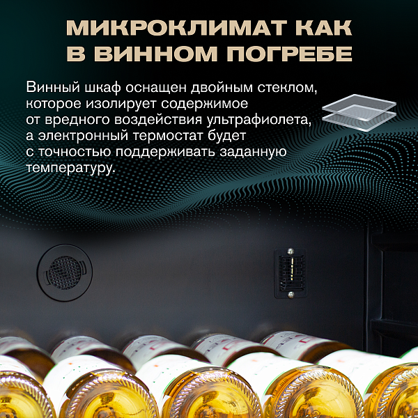 - Вместимость 116 бутылок 0,75 л;
