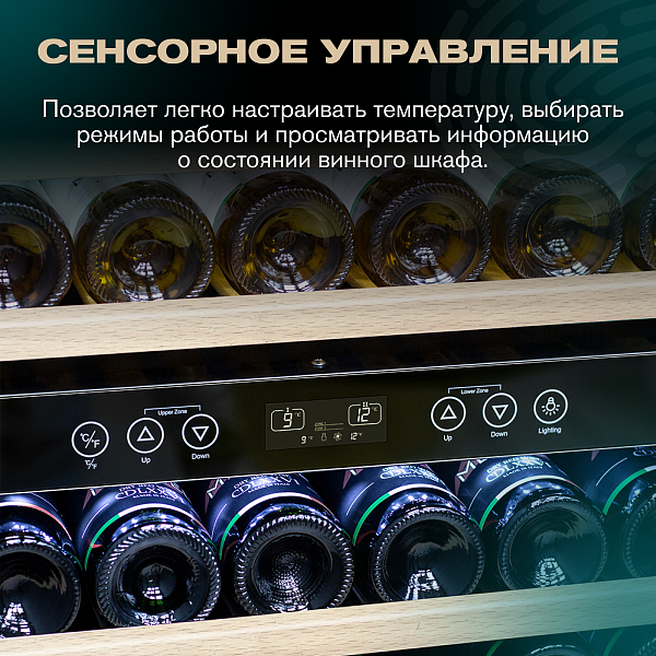 Так как температура хранения красного и белого вина разная, в каждой зоне имеются настройки температуры, в которых вино сохранится в лучшем виде.