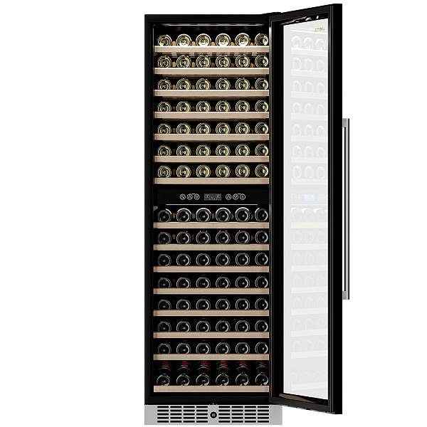 Компрессорный винный шкаф Meyvel MV160-KST2 обладает большой вместимостью и способен разместить до 174 бутылок. Располагаются они на полках из массива бука. Внутреннее пространство шкафа разделено на 2 температурные зоны с возможностью настраивать каждую из них: диапазон нижней зоны от +10°C до +18°C, а верхней - от + 5°C до +10°C. Холодильник поддерживает влажность в диапазоне 60-80%, как в настоящем винном погребе.