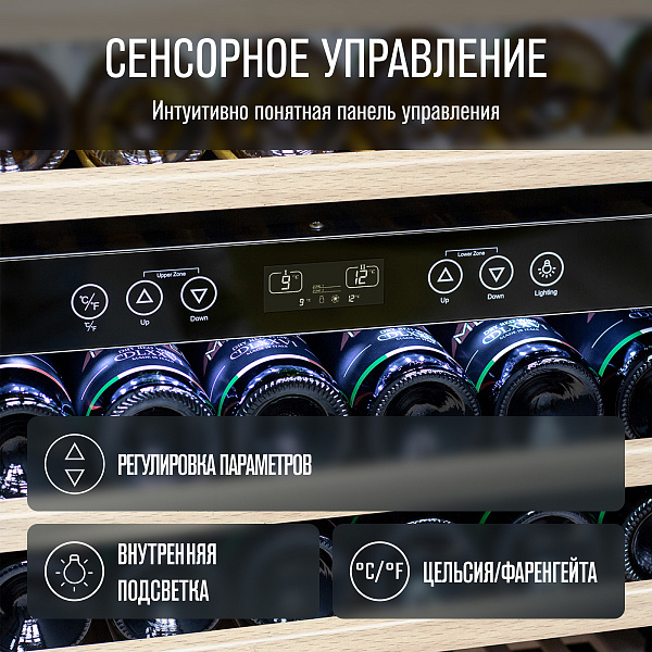 Так как температура хранения красного и белого вина разная, в каждой зоне имеются настройки температуры, в которых вино сохранится в лучшем виде.
