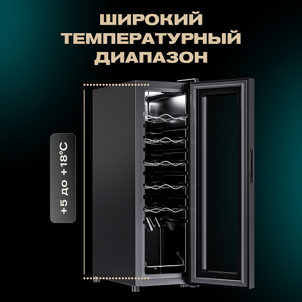 - Вместимость 12 бутылок 0,75 л;