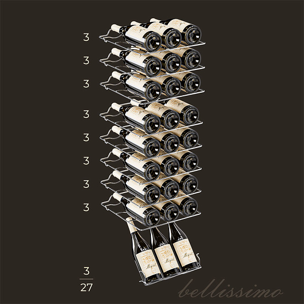 - Вместимость 27 бутылок 0,75 л;