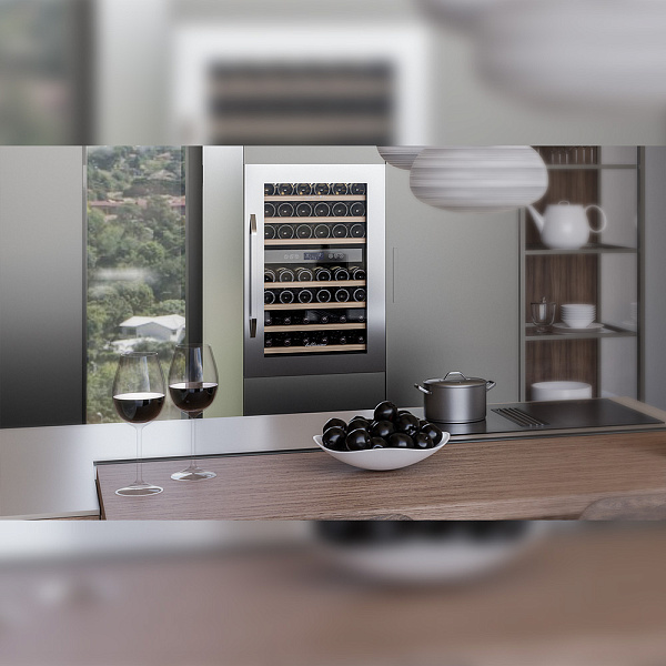 - необходимо установить винный шкаф по уровню и отрегулировать зазоры между дверью и мебельными фасадами, чтобы не повредить их.