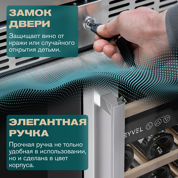 Модель MV46-KST2 имеет привлекательный внешний вид, сочетающий в себе неподвластное времени очарование натуральных материалов с высокотехнологичными системами сохранения продуктов. Винный холодильник Meyvel MV46-KST2 оснащен дверью с защитой от ультрафиолетовых лучей и отлично подойдет для хранения и созревания различных сортов вин. Динамическая система охлаждения обеспечивает оптимальную температуру для вина и сохраняет необходимую влажность внутри камеры.