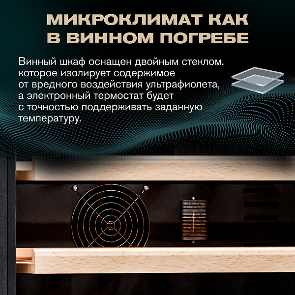 - Вместимость 46 бутылок 0,75 л;