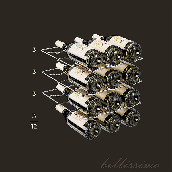 - Вместительность 12 бутылок типа Бордо (0,75л);
