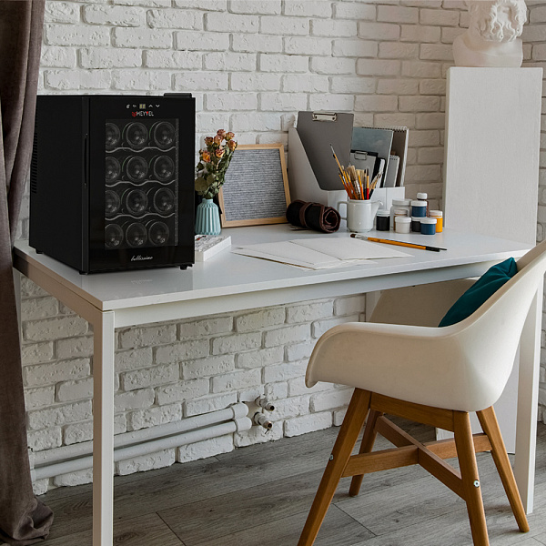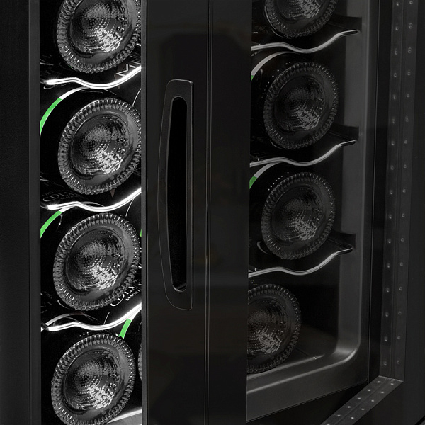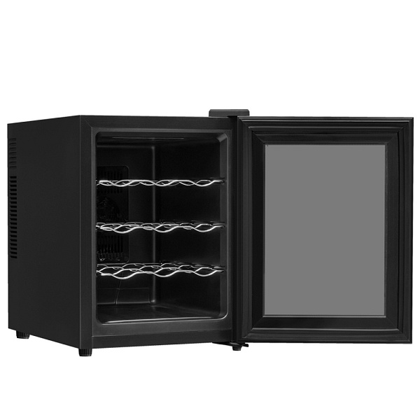 Благодаря компактным размерам данную модель можно разместить практически в любом помещении. Двойное стекло с защитой от прямых УФ-лучей поддерживает качественные условия хранения вина. Для размещения винных бутылок, шкаф оснащен 3 полками из хромированного металла.