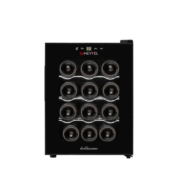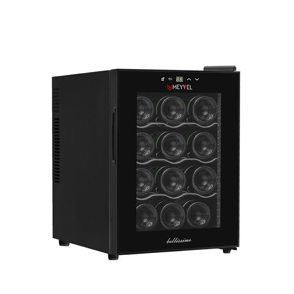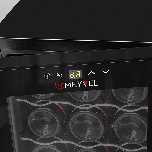 Термоэлектрический винный шкаф Meyvel MV12-TB1 обладает небольшой вместимостью и способен разместить в себе до 12 бутылок. Управление осуществляется с помощью интуитивно-понятной сенсорной панели. Внутреннее пространство шкафа имеет одну температурную зону с возможностью настраивать её в диапазоне от +10 °C до +18°C. Электронный термостат помогает стабильно поддерживать заданную Вами температуру. Внутренняя влажность держится в диапазоне 60-80%. Перечисленные особенности создают условия хранения, которые надолго сохранять вкусовые качества вашей винной коллекции. Дополнительно у данной модели шкафа предусмотрен демонстрационный режим, во время которого освещение не гаснет.