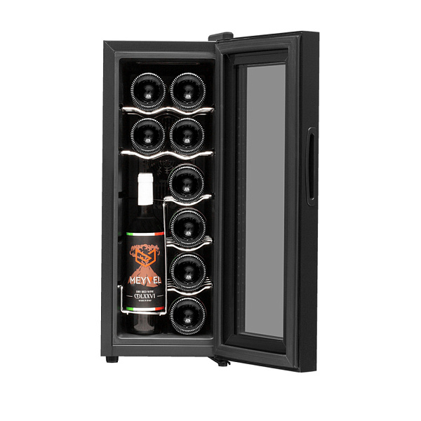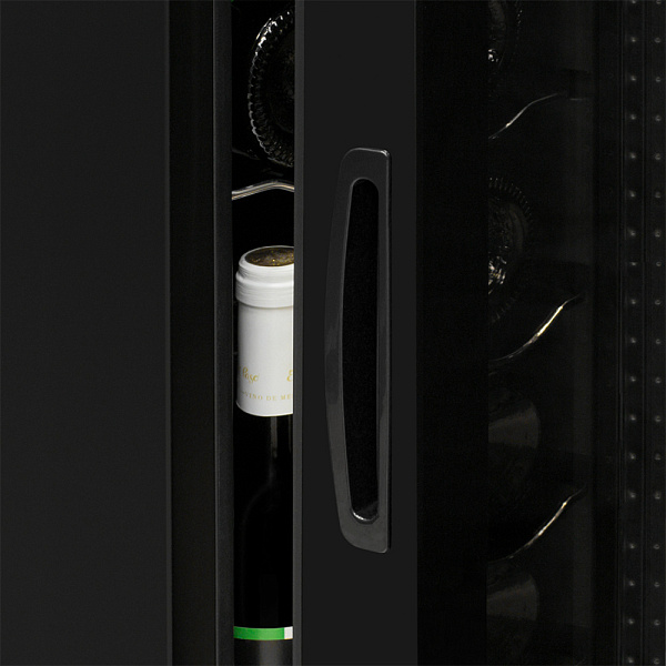 Благодаря компактным размерам данную модель можно разместить практически в любом помещении. Двойное стекло с защитой от прямых УФ-лучей поддерживает качественные условия хранения вина. Для размещения винных бутылок, шкаф оснащен 3 полками из хромированного металла. Одна из полок имеет возможность хранения бутылок стоя.