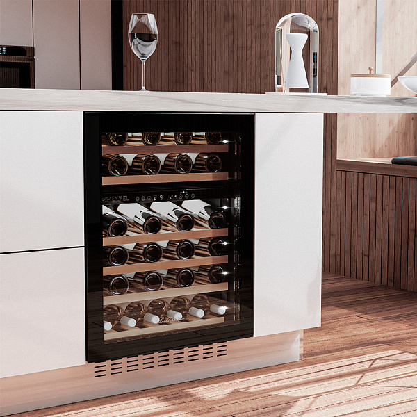 - необходимо установить винный шкаф по уровню и отрегулировать зазоры между дверью и мебельным фасадом, чтобы не повредить их.