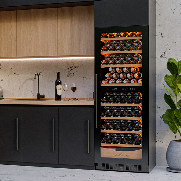 Этот винный холодильник отлично впишется в любой кухонный гарнитур благодаря своим размерам. Это одна из немногих моделей, у которой глубина не превышает глубину кухонной столешницы. Поэтому при установке он не будет выступать за габариты столешницы. (глубина стандартной столешницы 600 мм / глубина винного шкафа 530 мм) .