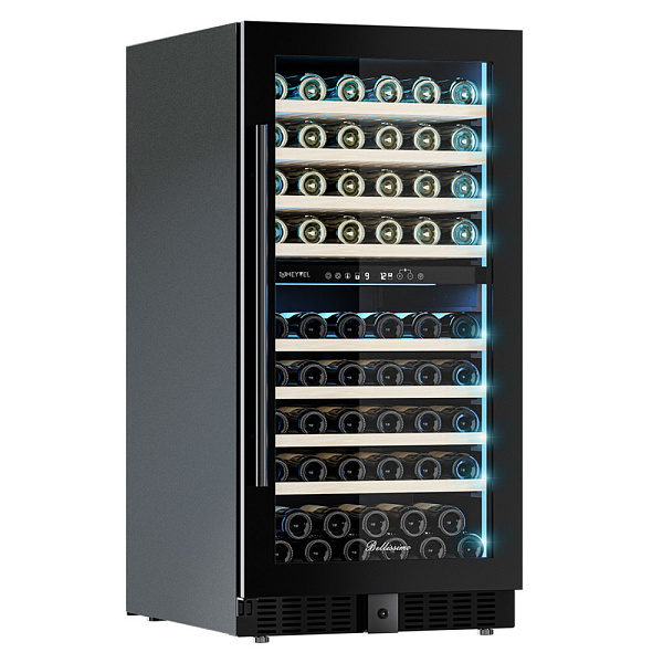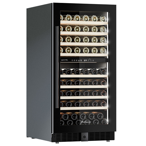 Компрессорный винный шкаф Meyvel MV99PRO-KBT2 обладает большой вместимостью и способен разместить до 99 бутылок. Располагаются они на полках из массива бука. Внутреннее пространство шкафа разделено на 2 температурные зоны с возможностью настройки в диапазоне от + 5°C до +20°C. Холодильник поддерживает влажность в диапазоне 60-80%, как в настоящем винном погребе.