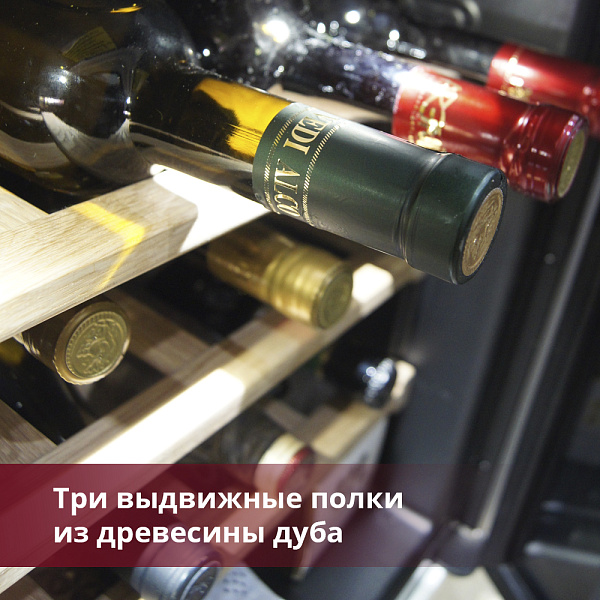 - Температурный режим в диапазоне от +4°C до +18°C позволяет хранить белые, красные и игристые вина.