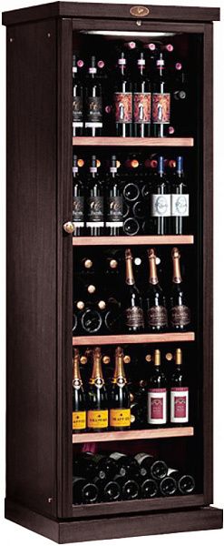 Модель оснащена статической системой охлаждения на базе компрессора SECOP (Danfoss), которая кроме охлаждения вина еще и сохраняет оптимальную влажность внутри камеры. Комплектуется шкаф девятью деревянными полками.