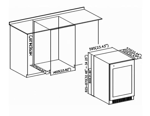 Разные. Так как винные шкафы представлены на рынке в отдельно стоящим и встроенном варианте, для дома, кафе, и ресторанов, и это подразумевает наличие разных размеров.