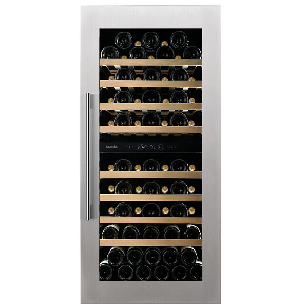 Изысканная модель Dunavox DVS-70.185DSS вместимостью 70 бутылок с ЖК-экраном. Встраивается в колонну, полноценно вливаясь в кухонный гарнитур.