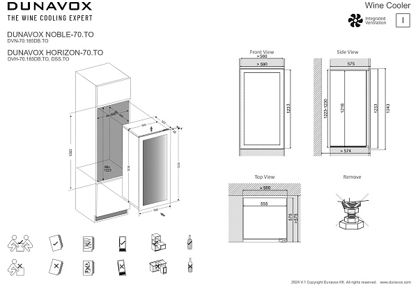 Изысканная модель Dunavox DVH-70.185DB.TO вместимостью 70 бутылок с ЖК-экраном и уникальной системой открывания одним нажатием Touch Open. Встраивается в колонну, полноценно вливаясь в кухонный гарнитур.