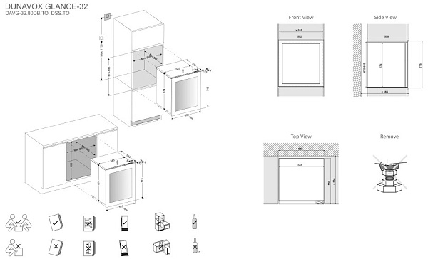 Модель DAVG-32.80DMB.TO входит в серию встраиваемых винных шкафов «GLANCE», которые разработаны с использованием технологии push-to-open (дверца открывается автоматически после легкого нажатия на ее верхнюю часть). Благодаря встроенной системе вентиляции устройства интегрируются как в колонну, так и под столешницу.