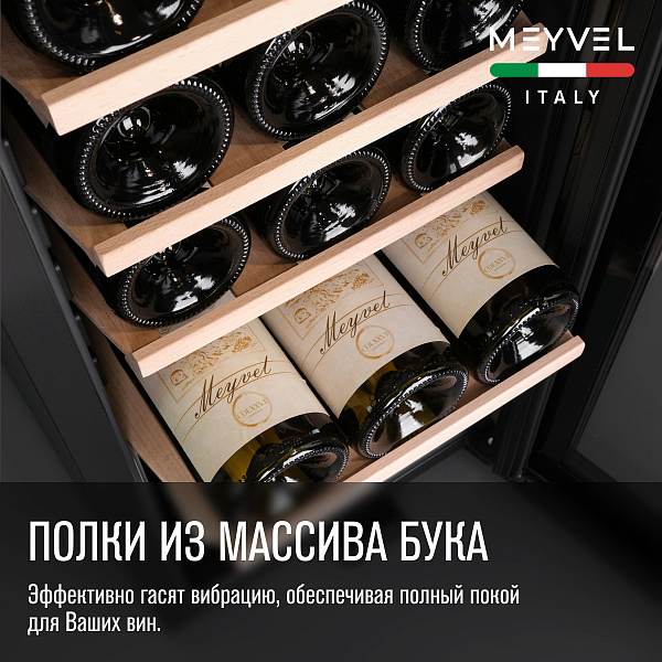 Винный шкаф Meyvel MV15-KBF1 – отличный выбор для ценителей вина, которые хотят организовать элегантную и практичную энотеку. Это сильное и вместе с тем функциональное устройство способно вместить до 15 бутылок типа «Бордо» 0,75 литра, обеспечивая их идеальное хранение.