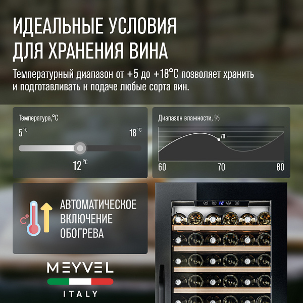 Преимущества винного шкафа Meyvel MV66-KBB1: