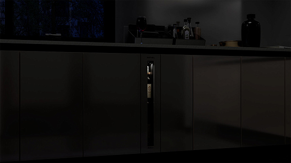 - необходимо установить винный шкаф по уровню и отрегулировать зазоры между дверью и мебельным фасадом, чтобы не повредить их.