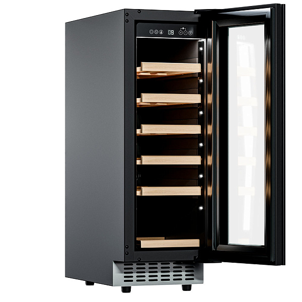 Компрессорный винный шкаф Meyvel MV19NH-KWT1 обладает оптимальной вместимостью и даёт возможность разместить до 19 бутылок стандартного типа Бордо (0,75 л). Располагаются они на выдвижных полках из дерева. Внутреннее пространство шкафа поддерживает комфортную для вина температуру от +5°C до +20°C. Так же, эта модель поддерживает влажность в диапазоне 60-80%, как в настоящем винном погребе.