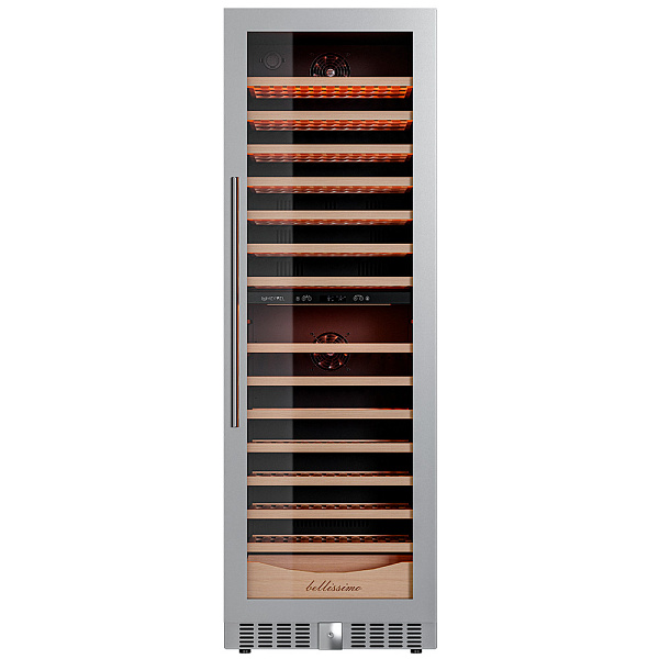 Внутреннее пространство винного шкафа разделено на две температурные зоны. Вы сможете настроить их так, что бы хранить все виды вина при идеальной температуре или установить разные значения, что бы напитки всегда были готовы к подаче. Так же в каждой зоне есть полка с увеличенным пространством. На таких полках Вы сможете разместить не только стандартные бутылки Бордо, но и Магнум. А если нужно разместить что-то побольше - то в этом случае можно вынуть одну или несколько полок. Внизу есть выдвижной ящик - в нем Вы можете хранить вино в бутылках или винные атрибуты (штопор, бокалы, аэраторы, декантеры, каплеуловители, термометры и т.д.).