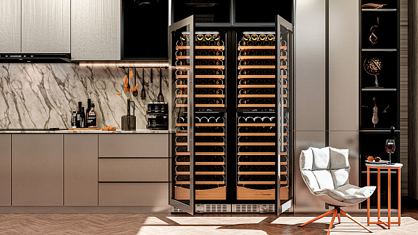 Две температурные зоны для хранения вин и подготовки их к подаче;